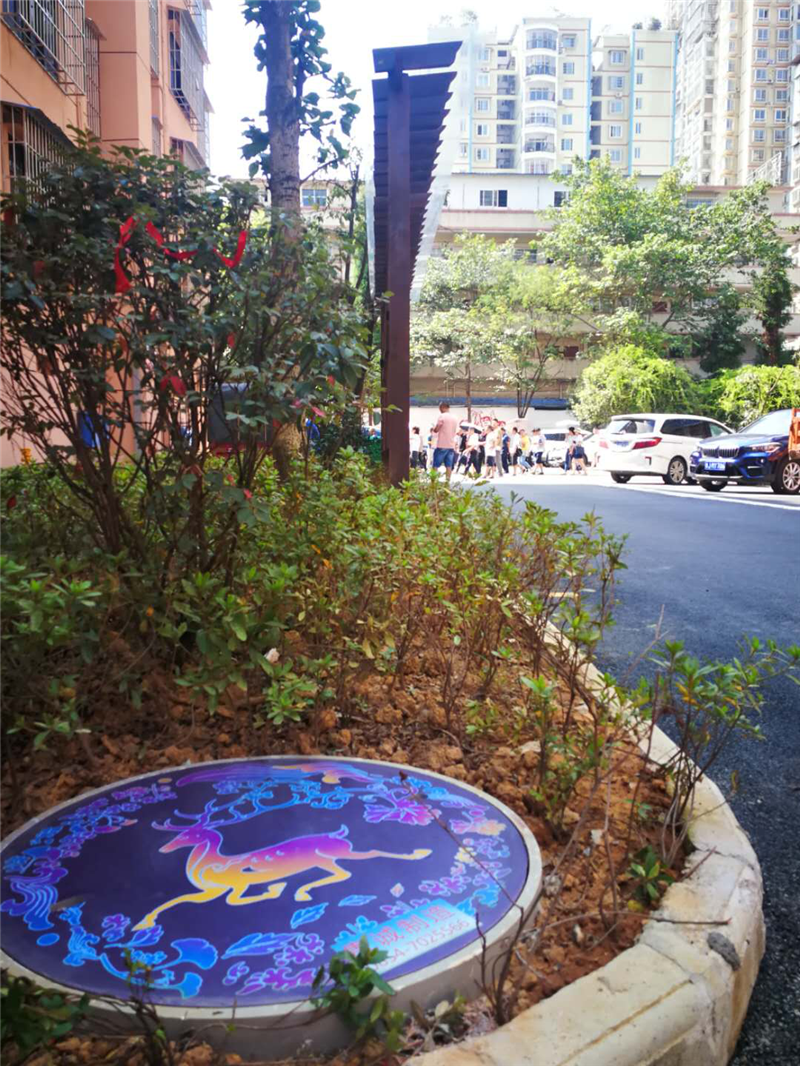 都匀市南华新村是黔南州旧城小区升级改造的示范小区,9月,贵诚集团将艺术井盖嵌入都匀市南华新村小区绿化带,提升小区的艺术品位,使之成为小区一道靓丽的风景线。