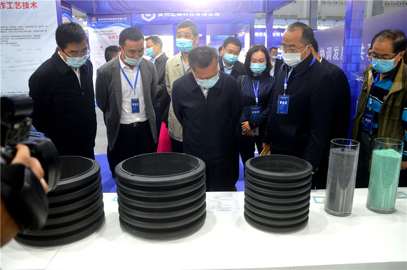 会上,贵诚集团展示了“高分子磷石膏五防井盖、高分子磷石膏树脂艺术井盖、高分子磷石膏排水管、高分子磷石膏电力通信管、改性磷石膏商品原料”等新产品。副省长胡忠雄、省政府副秘书长邹康等一行领导到贵诚集团展台进行参观交流,集团董事长赵建波详细介绍、汇报了磷石膏在高分子材料中应用的具体情况,受到贵州省、贵阳市、黔南州及与会各级领导的高度肯定和支持。