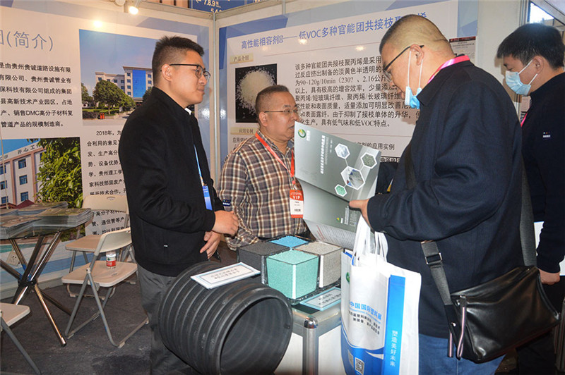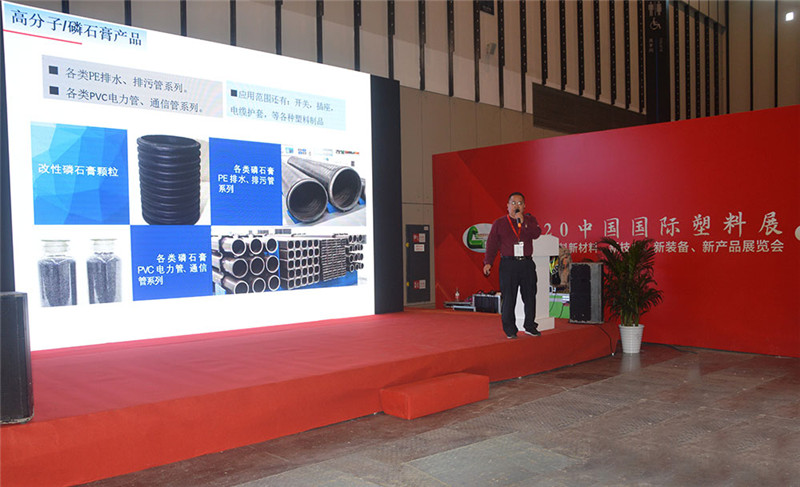 2020中国国际塑料展暨四届塑料新科技、新技术、新装备、新产品展览会于2020年11月3日—5日在江苏省南京市国际博览中心举行,贵诚集团作为贵州大学产学研合作基地,携手贵州大学共同参展。在此次展会上,贵诚集团向各大参展的领导、协会、企业展示了改性磷石膏粉料及改性磷石膏颗粒料,同时也展示了贵诚集团用改性磷石膏原材料自产的管材产品。改性磷石膏原材料作为一种新的工业填充料,其韧性、硬性及市场价值受到了许多参展原料厂商的关注及兴趣。